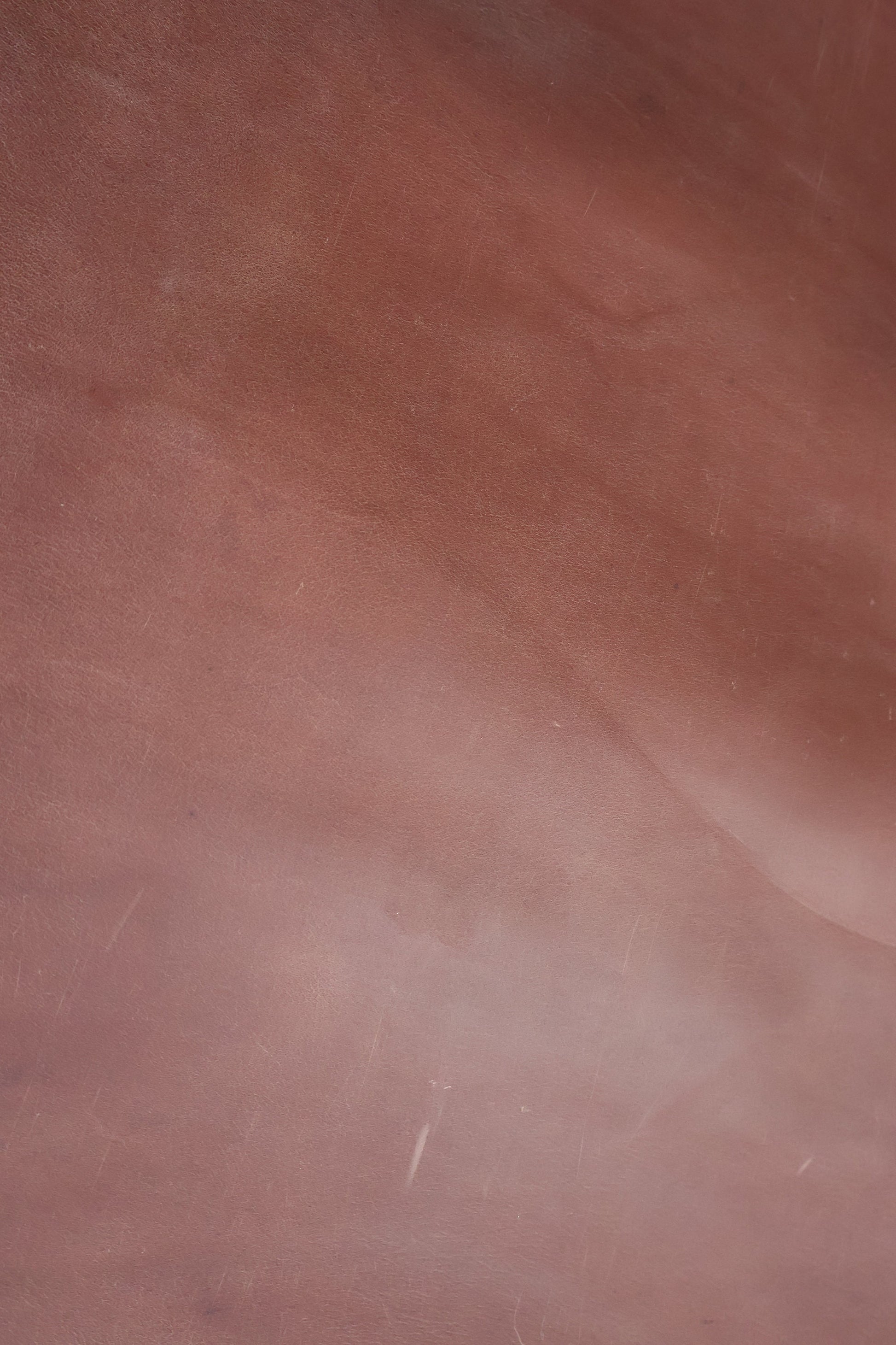 That unique genuine cow hide has a nice crunchy look, semi-shiny with a slight two-tone effect. Soft and thick at the same time. It is getting better with aging and use.